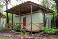 Our air conditioned cabins have two rooms twin share or double. Rooms are separated by a shared en suite bathroom. We provide you with Linen & towels and your own personal verandah. The cabins are only a short walking distance to the restaurant & bar and pool area. Cabins are set in the bush, and only a short walking distance to the beautiful golden beach.